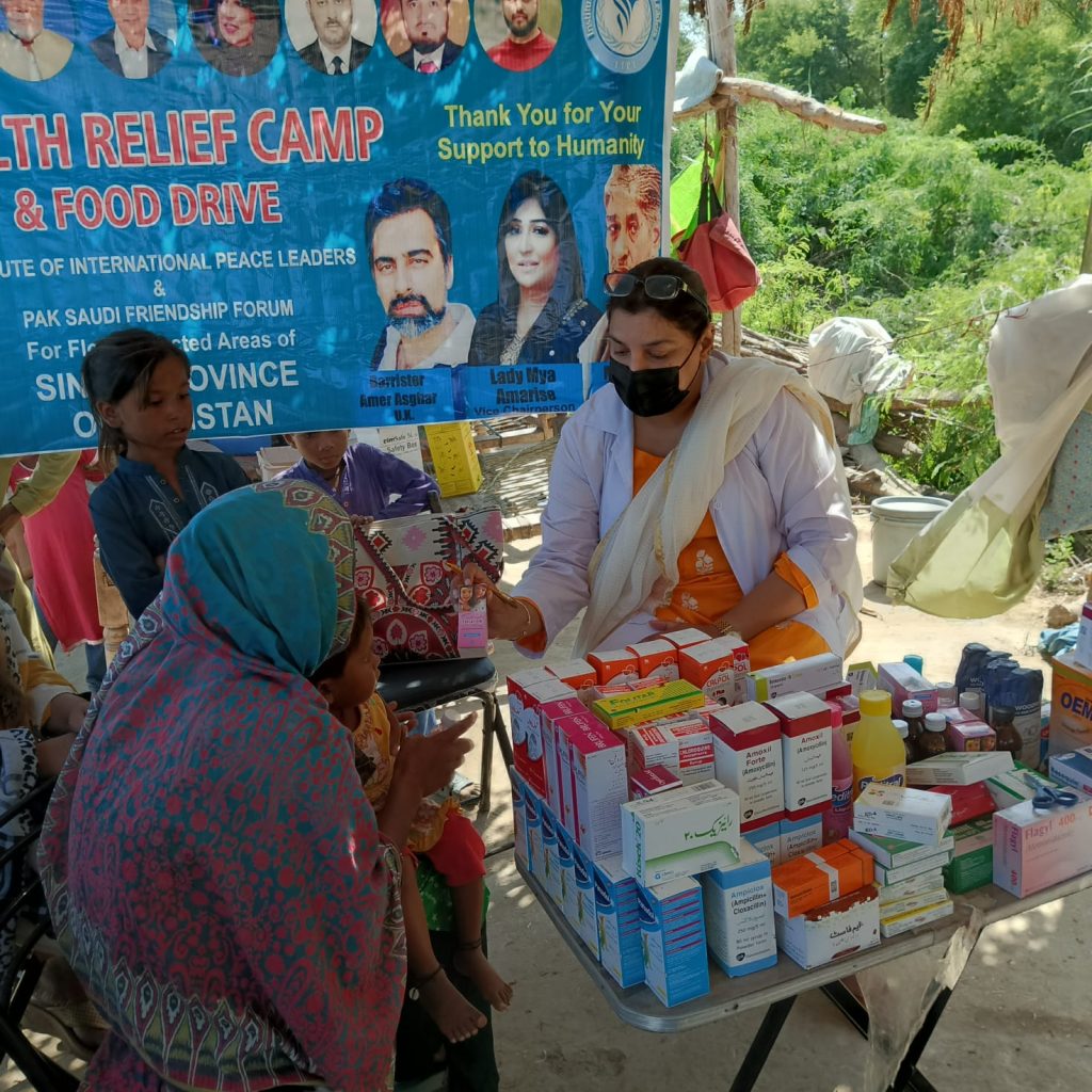 A medical camp and food distribution campaign is organized today in Goth Laghari, Sindh, Pakistan by Institute of International Peace Leaders and Pak Saudi Friendship Forum. Goth Laghari is badly affected by flood. The situation is devastating and stagnant water is causing diseases. IIPL team of doctors has reached this areas and treated the patients.