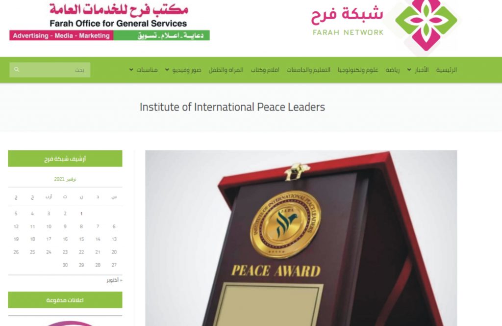 Farah Office for General Services which is providing media, advertising and marketing in Palestine and around the world. We are thankful to its Managing Director Dr. Fathi Said for publishing Institute of International Peace Leaders Award nomination news.